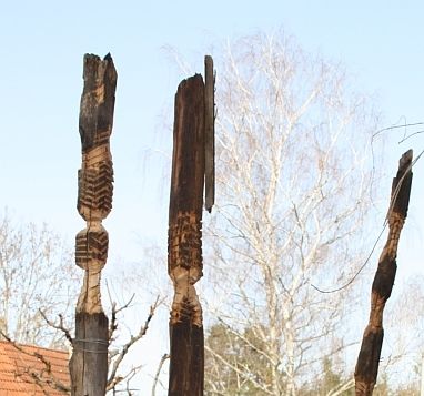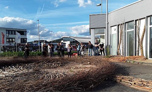 Auf einer Grundflache von 15 x 20 Metern haben Barbara Guthy und Soana Schüler die ortsspezifische Installation "Circles of Life" geschaffen aus ca. 80 Kubikmeter Baumstämmen, Ästen und Zweigen, die direkt bei den Vorbereitungsarbeiten auf den Konversionsflächen und den Renaturierungsmaßnahmen am Neckar geborgen wurden.