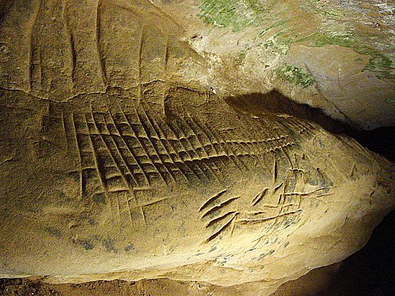 Die Höhlen der Ile de France südlich von Paris sind uralte Kultstätten mit Steinritzungen, ca. 10.000 Jahre alt.