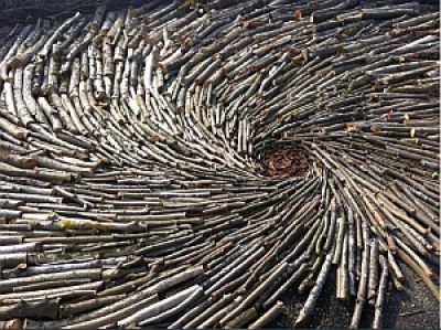 folgt in Mannheim ÜberLebenskunst aus Naturmaterial, das im Zuge der Bebauung der Konversionsflächen und bei der Neckar Renaturierung "angefallen" ist.